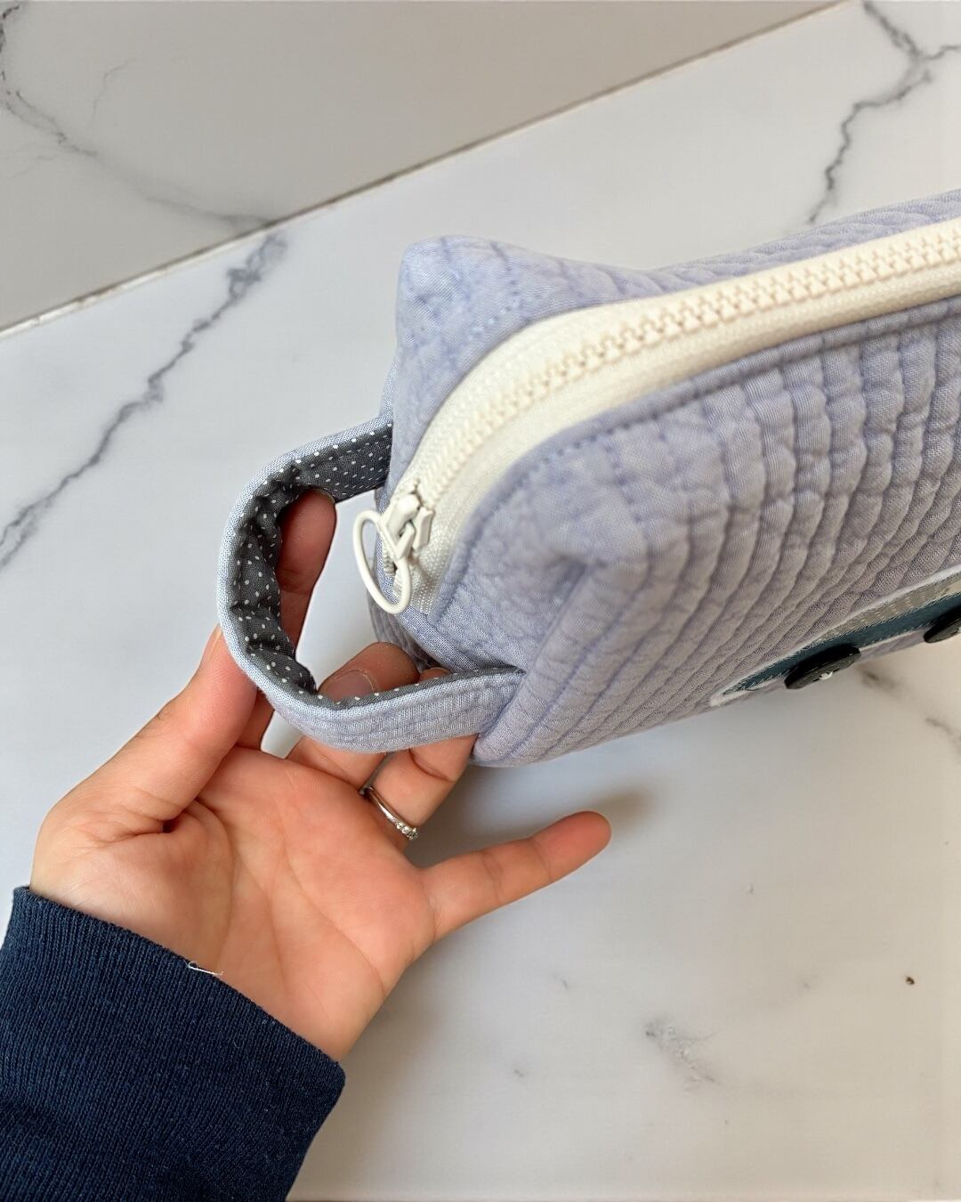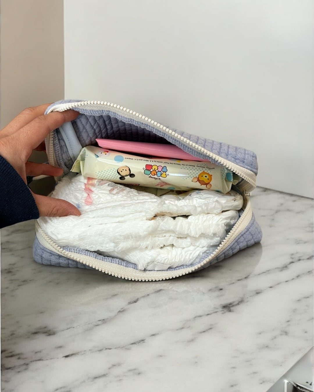 〈即納〉おむつが入るマルチポーチ トワイライトブルー×くるま