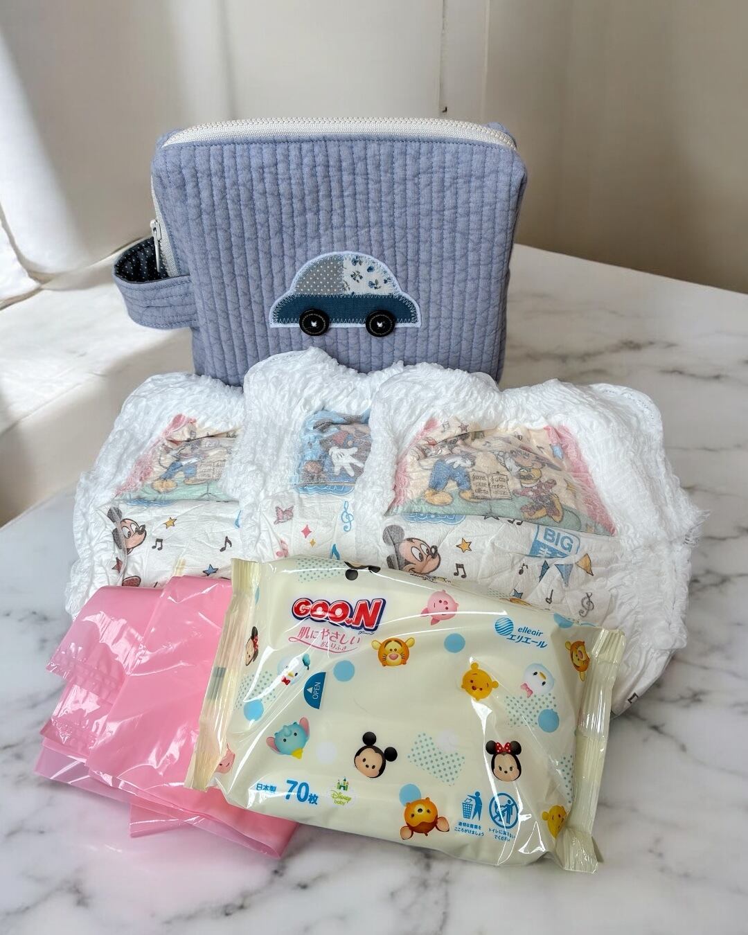 ◯おむつ3枚+お尻拭きがぴったりサイズ
